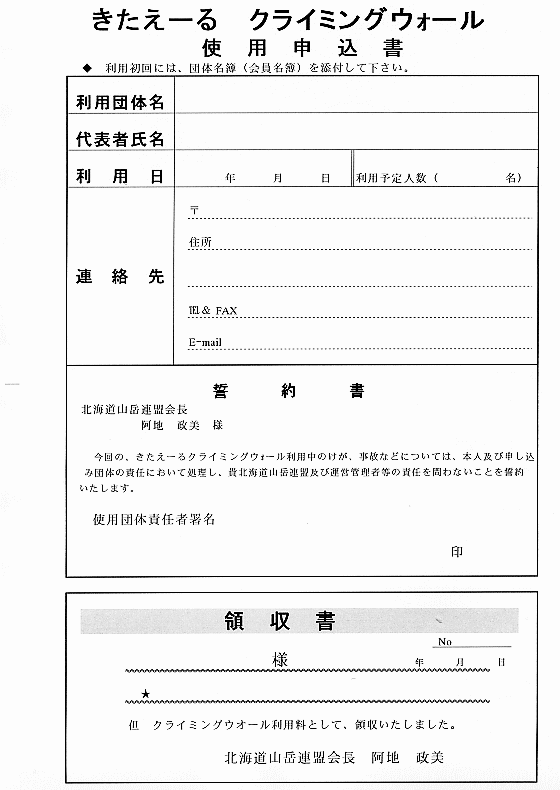 5、 使用日の決定は、北海道山岳連盟ホームページ・クライミングニュースで行うが、
