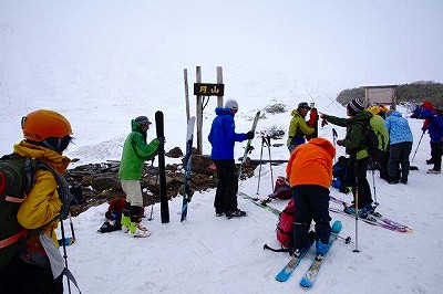天気は回復傾向にあり月山スキーでは青空が見え隠れしていた。到着後登山準備の速さは、堰を切った水の如く準備