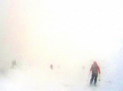 ところが、予報どうりに低気圧の影響で、大揺れの船に酔って体調不良になり、上陸して姥が岳スキー場から上ると、視界