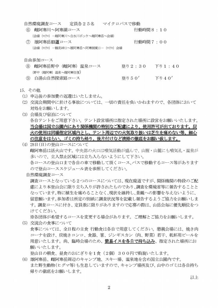 第25回道岳連交流&研修登山阿寒岳大会案内