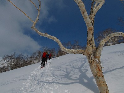た。快適なパウダー滑降であった。その後、湯沼を通り、チセヌプリスキー場休憩所で昼食。時間も早