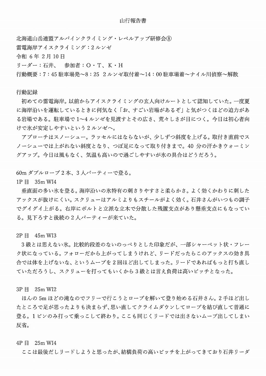 2/10 雷電海岸アイスクライミング