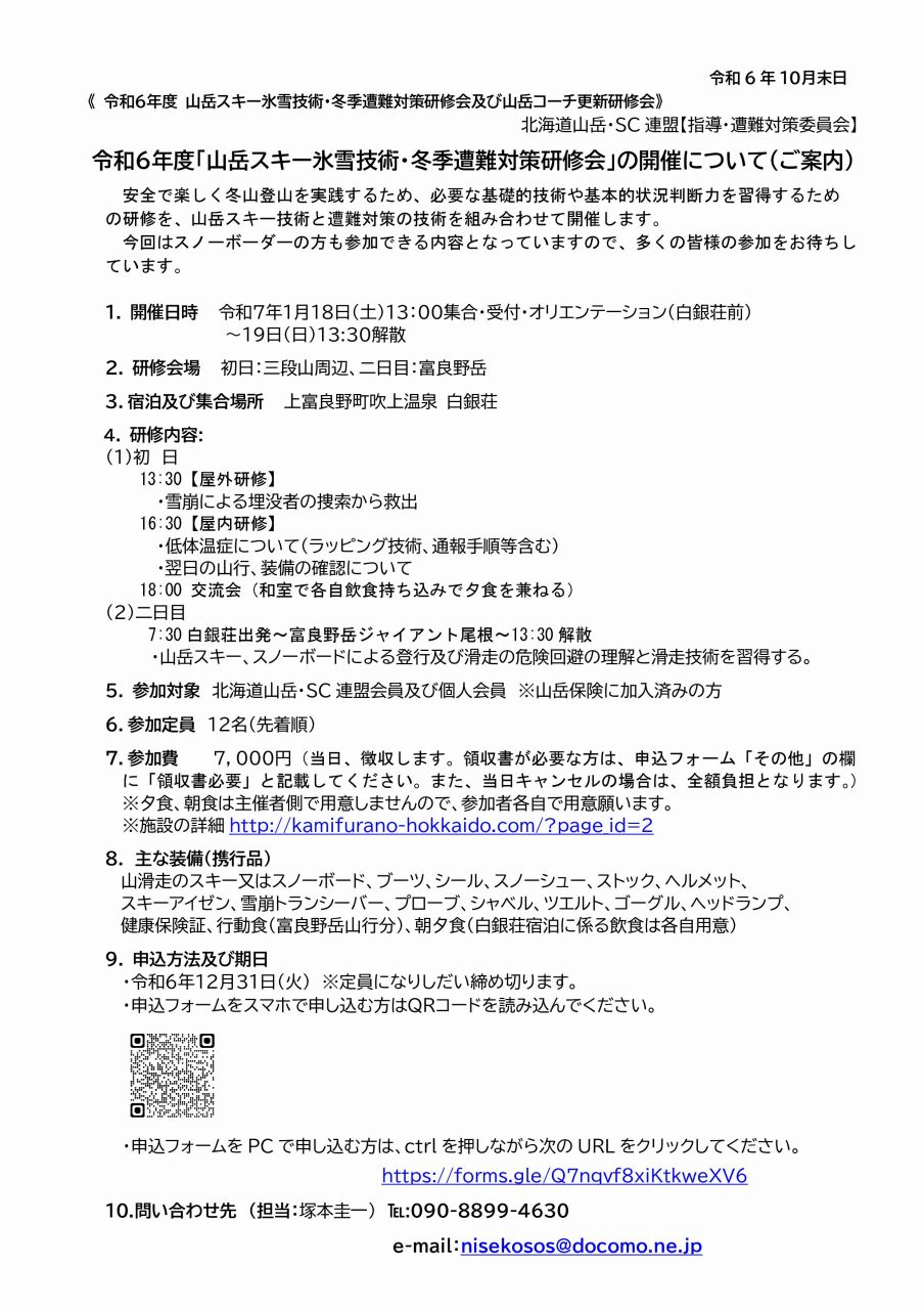 問い合わせ先 (担当:塚本圭一) :090-8899-4630 e-mail:nisekosos@docomo.ne.jp